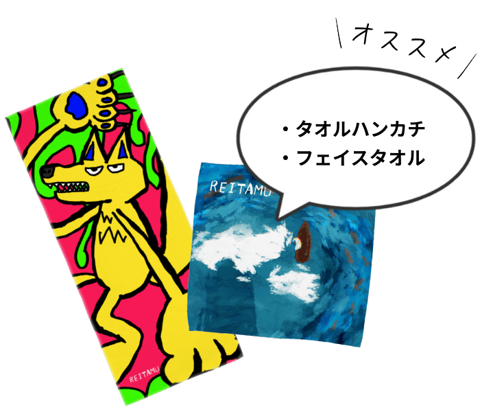 その感性豊かな世界を、ハンカチやタオルなどのアイテムに落とし込みました。
