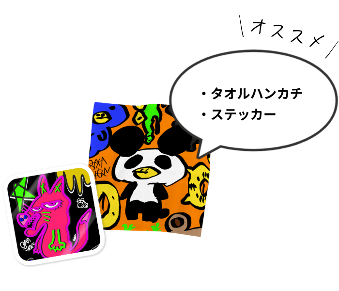 タオルハンカチ・フェイスタオル・ステッカーなど、